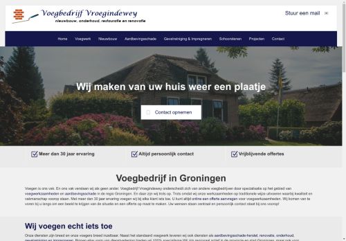 Voegbedrijf Vroegindewey heeft meer dan 30 jaar ervaring op het gebied van voegen, reiningen, het herstellen van (aardbevings)schades en meer. Wij komen altijd vrijblijvend bij u langs om een offerte op te maken!