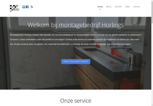 Welkom bij montagebedrijf HorlingsMontagebedrijf Horlings verleent alle diensten om uw droombadkamer te verwezenlijken. Bent u van plan om de gehele badkamer te verbouwen? Of wenst u losse onderdelen zoals het sanitair te vervangen? Dankzij onze kennis en expertise kunnen wij u optimaal van dienst zijn. Met meer dan 20 jaar ervaring staan wij garant voor